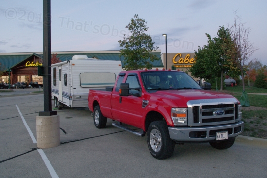 From there, I went to Cabela’s in Hoffman Estates and parked overnight in the RV section of their lot (with their permission). With both fresh potable water and a free dump station here, this is my kind of place. They even have outside horse stalls and dog kennels set up for temporary use. My old Radio Shack indoor/outdoor thermometer crapped out, so I’ll see if Cabela’s has a similar unit in stock.