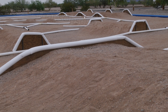 He told me of an R/C car track a short distance away, and I managed to find that, too. Nobody there, but it was a pretty decent off-road (dirt) track. Made me think of the ancient R/C racing truck that I have packed away in a storage space near my home base. There were no power outlets anywhere, so I have the feeling that it’s intended for gas cars instead of electrics. It’s possible to recharge electrics on such tracks, but you have to have a big deep-cycle battery, and you don’t get all that many recharges out of it. Some folks pop open the hoods of their (real) cars and run the engine a bit to recharge off its battery – that’s what we did in the early days – but well, I’ll cruise past on a Saturday and see if anyone’s there.