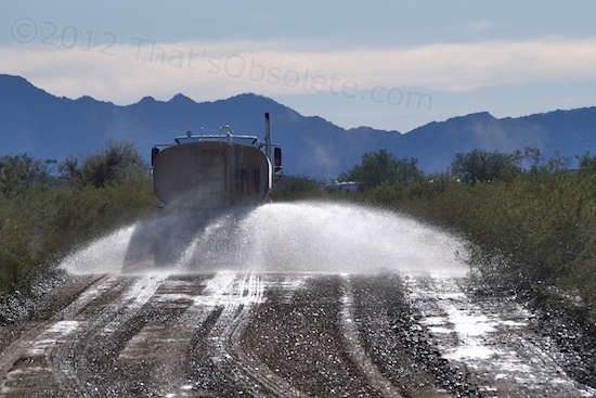 This was the last thing I expected to see when I got up this morning: a road grader and a water truck!