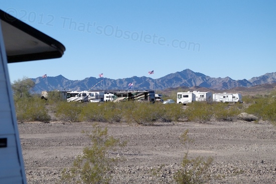 A club of Lazy Daze motorhome owners gathered for a few weeks in the LVTA, and recently thinned out to half in just one day. Movin ‘on, I guess.