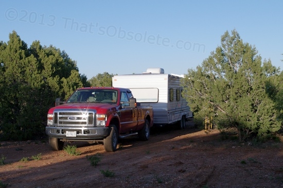 This TT rig has its drawbacks, like fuel mileage, sheer length and weight, mounting and stowing the panels, and giving me an innate fear of trails in National Forests. Vintage trailers like this just don’t have any ground clearance – I’ve grounded out on gas station aprons! It’s had its mechanical challenges, too. It has issues with weight distribution that will need future mods, since the optimum battery and solar panel storage layout has boosted tongue weight past what a 1/2-ton pickup could carry. In the long run, that limits my future tow vehicle options to more expensive choices. A more flexible person with more time could easily outfit a smaller trailer for boondocking more conservatively, saving considerable money on the total rig, and boosting campsite choices to boot.