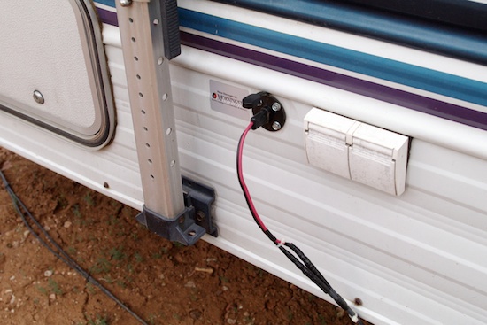 The solar power connector leading to the battery storage area under the bunkbed, to power the system for the CPAP device.