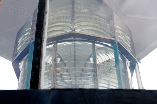 The light went from kerosene to electric bulb in 1954. The upper lens section rotates to vary intensity, while the lower is fixed.