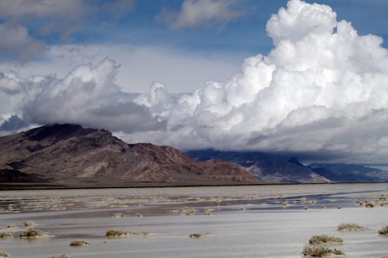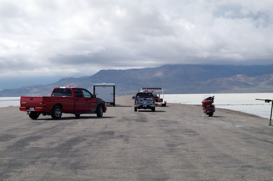It rained again last night, some 3/4-inches I’m told. The above photo was taken at the Speedway entry point, where club organizers have been camped for longer than I have. The good fortune in this for me was that I arduously biked the sweaty 5-1/2 miles against a headwind to get there just in time. I was out for “a little exercise” and found that the published distance was shorter than reality. Wheeze. If I’d been 2 minutes later, I’d have never been informed by the group that they were giving up for now, but had the flexibility to reschedule again for this coming Thursday Sept 19th. Hey, I can do that! And, I’ll save fuel money by being planted in one spot until the BLM throws me out! From Monday on, it should be nothing but sun, so it has a chance. All this is really funky, because driving past the Great Salt Lake in Salt Lake City showed it to be well on its way to drying up.