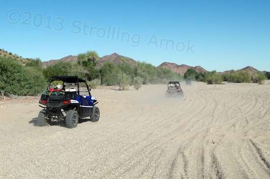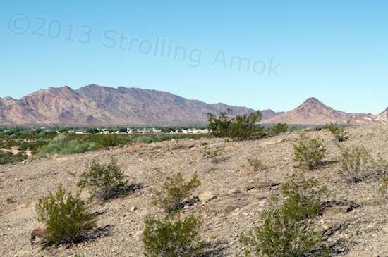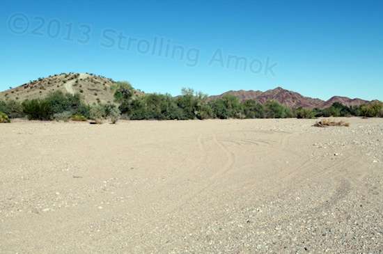 Tyson’s Wash is a pretty interesting place, being the main water thoroughfare through Quartzsite, AZ. It is mainly a flowing depression of deep sand, and much of it is hundreds of feet wide. Most of the time, it’s parched. But when rains come in sufficient quantity, it is full, and moving fast. I went to see it yesterday while searching out an appropriate campsite with one C. Swankie, an RVer with considerable energy and fortitude. Since she has a degree in archeology, she served as my tour guide while on foot. Her blog is here, and be ready to be amazed by her Bucket List. She’s one of those people – just reading her bucket list makes me feel tired!