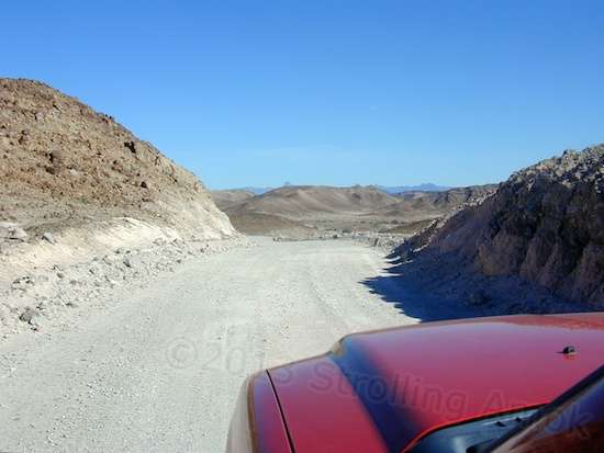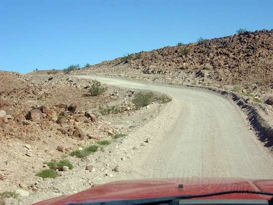 Ferguson Road is at points quite a visual reward. Many of the views it provides are inspiring, and if you shut down at the side of the road, the utter absence of sound is, well, something you may not experience in a lifetime. The road goes along through valleys, and winds around mountains in a single lane that, at a couple of points, disappears unseen below what your hood may allow. You have to stick your head out the window to make sure you’re not going to drop a wheel off an unprotected ledge. If the road twists to the right then, that’s not enough. You’d best stop and get out to make sure of where the road goes, because if you don’t keep all four on it, it’s a brief but exciting ride down. It gets wide, it gets narrow, it gets loose, and it gets finely packed. (Mind you, a car or older pickup with fewer “muy macho” styling queues will not have this visibility issue.)