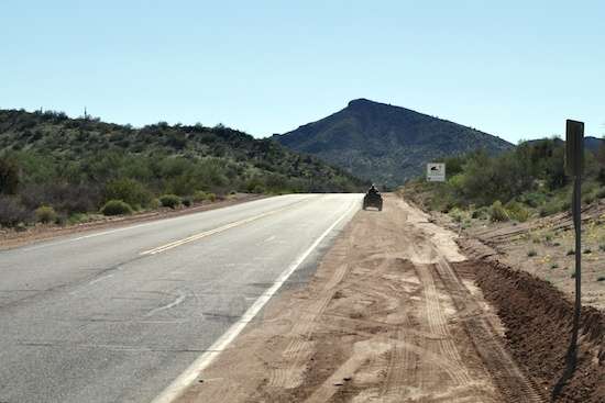 Why bother with it? Good question. There are two reasons, the lesser of which is that State Land can’t be beat for a mix of beauty and proximity to the most useful parts of Wickenburg. I stayed at Box Wash (BLM) last year, and despite glowing reviews from those much more versed than I, found it to be objectionably dusty and noisy from a consistent parade of ATV users. It’s main virtue was poor enforcement of the two-week limit by BLM Rangers, probably since it is a very confined camping area. Due to trail conditions, only vans and small van conversions were able to continue on up into a much nicer and more secluded hilltop area a mile away. Running solo, the Mighty Furd required 4WD to get there, so there was no hope for adding the Defiant. Way too heavy, and way, way too little clearance. My current location this year is exactly four miles from town over glass-smooth paved roadway.