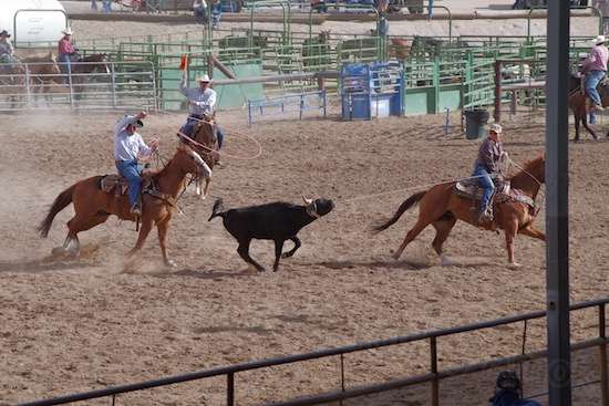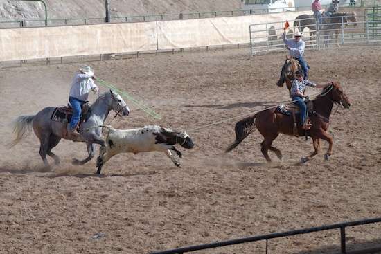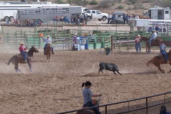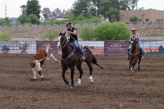 Wickenburg, Arizona still wears its Old West heritage on its sleeve, and for good reason. It’s still a ranching and equestrian town. As a result, each winter from November to April, there are numerous team roping events in any of several arenas in town, public and private. Team roping is a rodeo event that contains one steer, two mounted riders, and a couple of ropes.