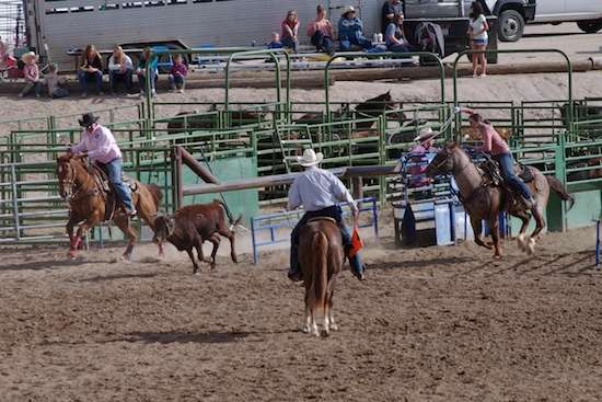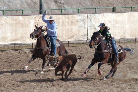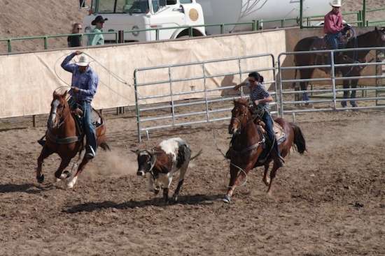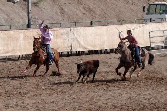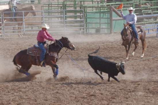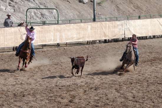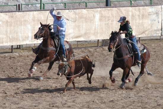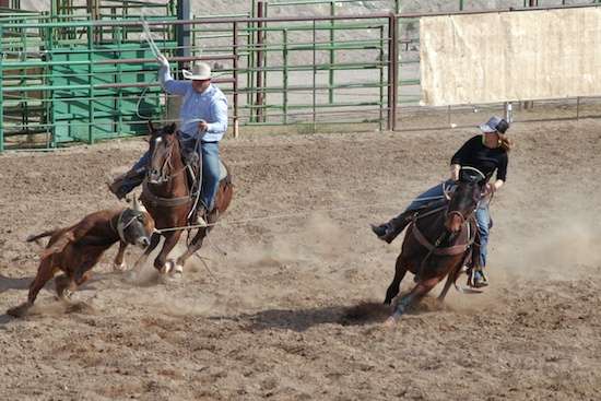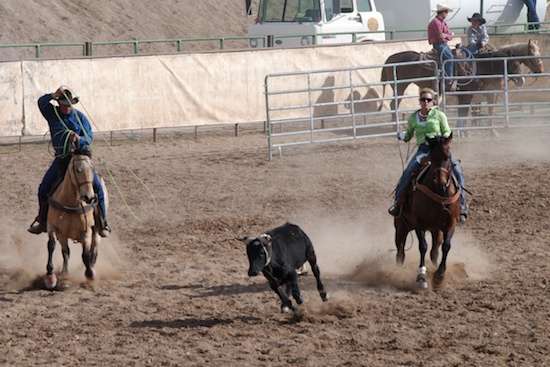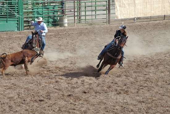 The historical goal is to quickly capture and immobilize a full-grown steer too large for one man to handle alone. To do this, the first rider tries to rope the steer’s horns, head or neck, while the second rider must rope both of the animal’s rear legs. Once the two pull far enough apart that the steer is judged as immobilized, the elapsed time is called. Team roping is about the only rodeo event where gender means nothing. It’s a straight-up race against time and other teams.