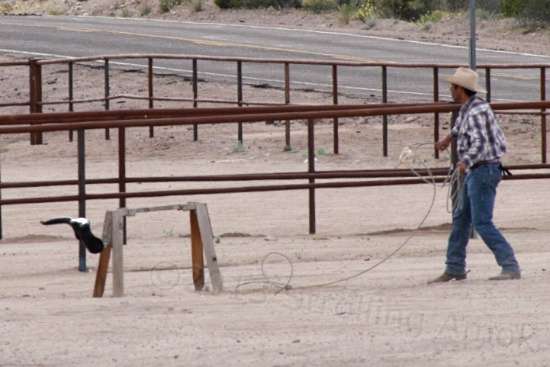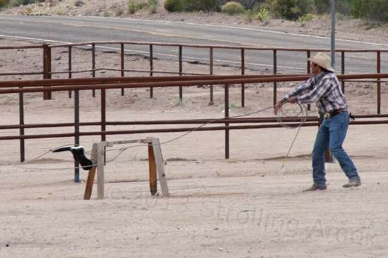 Heart-rending trauma over, the steer always seems to trot nonchalantly away, always headed toward the pen with the rest of the herd in it. The leg rope will usually fall off onroute but, if not, will be retrieved soon after.