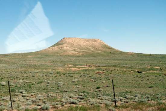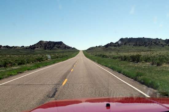 All of today’s drive was on open grazing land that rolled a bit here and there, but the distances you can see in all directions are incredible. 95% of it was on good two-lane county roads, and just the last bit on I-70. Good thing I had topped up on fuel, and also had a pretty reliable rig, because breaking down on these roads would put a crimp in the nonstop gawking. There are no shoulders, ever, and ranch entrances to pull in are few and far between. Unless you care to roll it over into a ditch, you may as well just stop on the roadway. It’s okay though – traffic is sparse. Towns are few and far between too, and business-bare groups of houses appear now and then. You can do 45-65 without getting in anyone’s way, and see some great stuff. Just don’t break down or run out of gas. Even if your cellphone worked, you’d likely have trouble describing where you were.