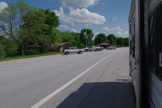 Here, I can move the trailer down the long row of parallel parking for RVs to the end, which is well past the nearest truck slot. There will still be plenty of highway tire noise, but not the rattling idle of diesels a few feet away.