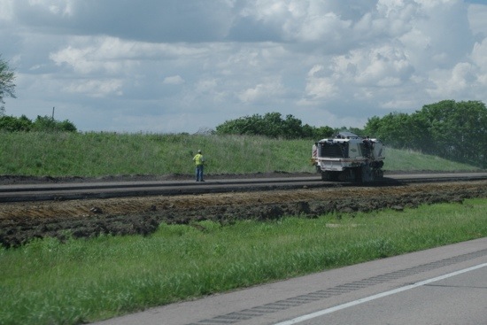 In a construction zone, the lanes going in the opposite direction were being replaced from scratch.