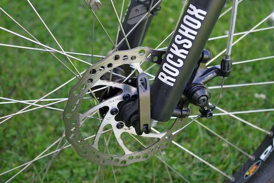 The front disc brake, like the rear, is pretty effective, and an improvement over classic caliper brakes.
