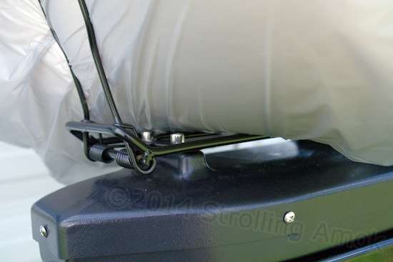 Carrying a rolled-up mattress topper, the soft steel clamp arms are at their rotational limit. Any more will force them to bend.