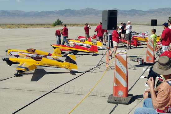 Here's the jet, and it had to stay well off the fringes of the pack, because it flew so quickly that no other flyer would be able to react to it in time to avoid a crash.