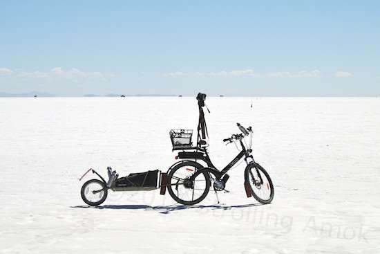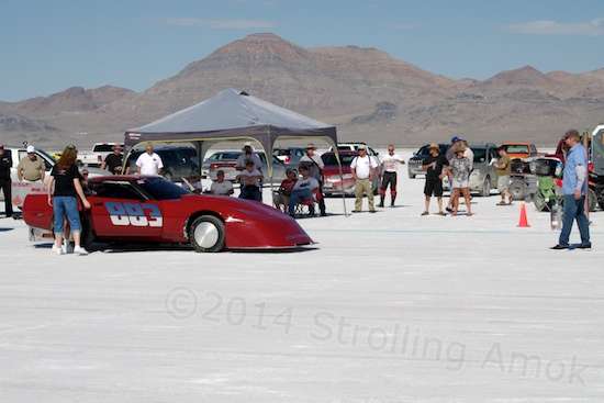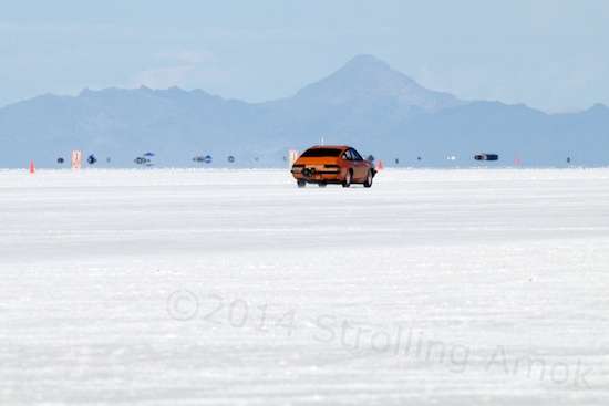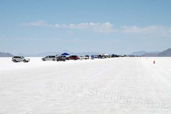 Yup, the Official Strolling Amok Videography Vehicle on the salt of Bonneville. As long as the salt is dry, the added fenders and flaps work quite well. Not perfect, but plenty good enough.