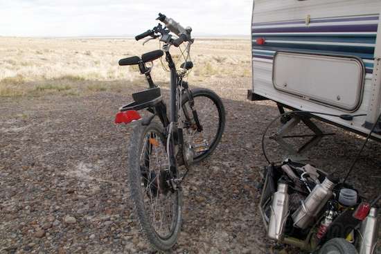 Lastly, the belt-and-suspenders approach is probably best when cycling out West. Don’t rely on just one system to deal with the threat of punctures. Double up. Tire liners (added or built-in) and self-sealing tubes. Of course, it’s preferable to prevent or stop a leak than it is to pull, patch, and reinflate a tube, but over long distances, being able to do both is even better. One long walk out here kind of drives that home.