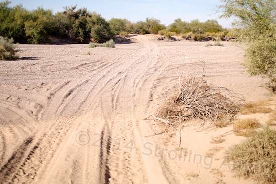 4. That looks like the wide wash I used last year with my dog in a baby’s jogging stroller. It was so easy to push everywhere we went in the desert, but that deep gravel was a real pain. I ended up having to pull it backwards to get it through. Never went back that way. 🙂