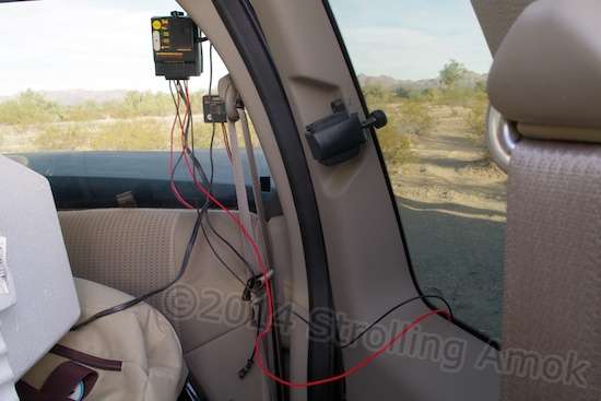 2. That looks like a nice solution. I was wondering, though, if the solar panel would fit on the dash inside the car. When I arrived in Quartzsite this year I was told that solar panels not attached to roofs were being stolen, so be cautious when you are away from your campsite for a while. 🙂