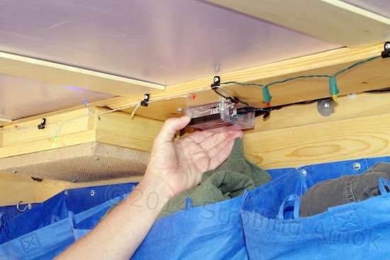 Though he has LED lamps, Richard says that plain old Christmas mini-lights make a nice, even ambient light for watching movies.