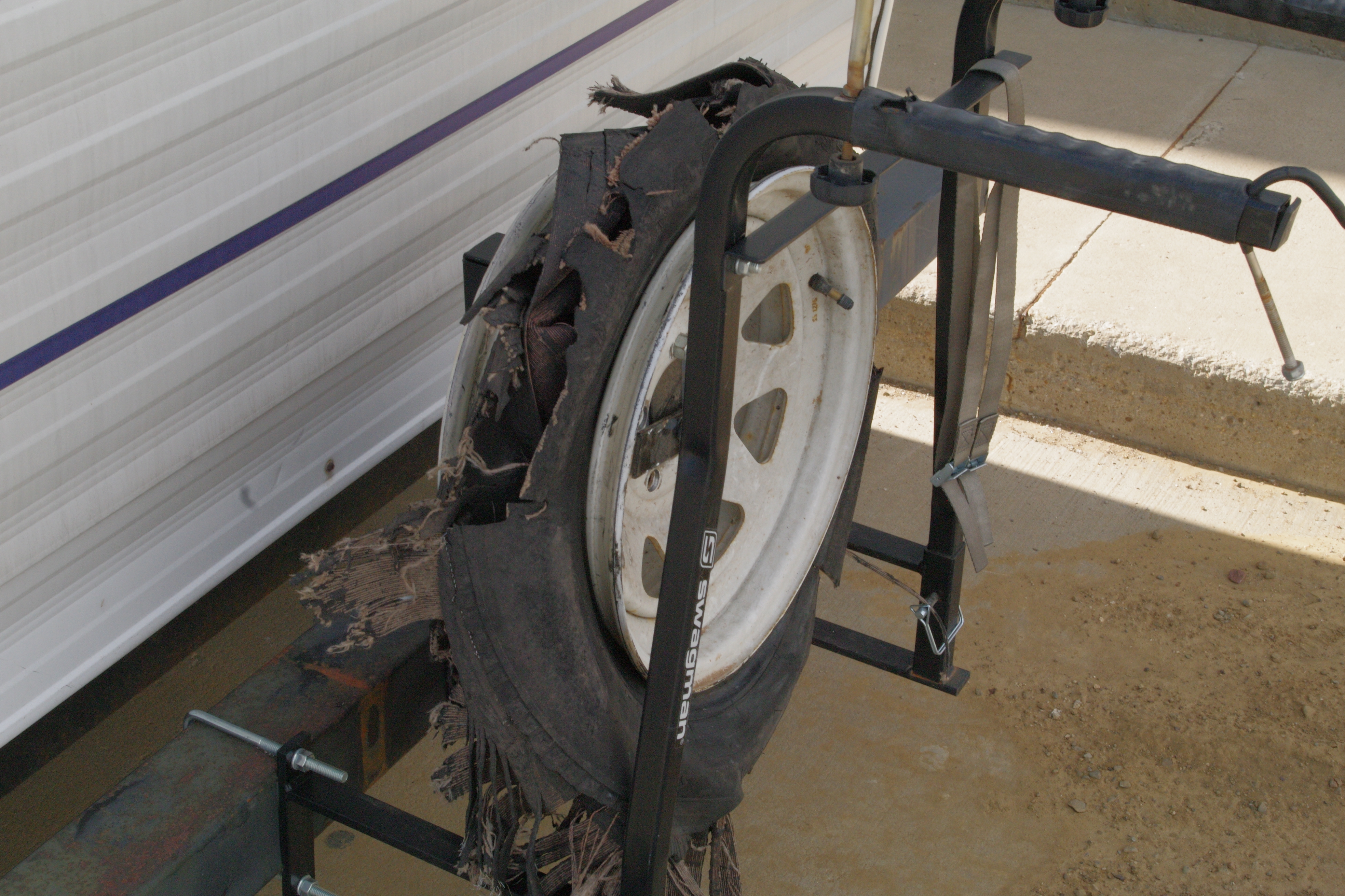 We’d have permanent rest homes beside the Interstate, is what! A flat with a previous owner hammered an inner fender liner pretty good, so this isn’t the trailer’s first tire mishap. Just shows to go ya that upping the weight class rating, topping out the pressure and never exceeding 60 MPH may eliminate overstress blowouts, but there’s little defense against a random puncture.