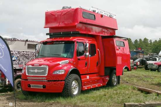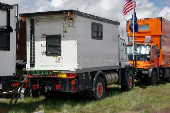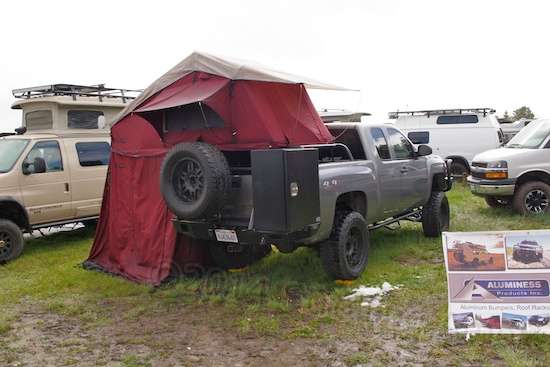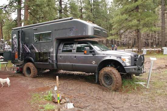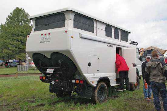 A Sportsmobile 4x4 in the campground, not the show. Sportsmobile was present as a vendor, and they have an enthusiastic following. That rear bumper and storage is by Aluminess.
