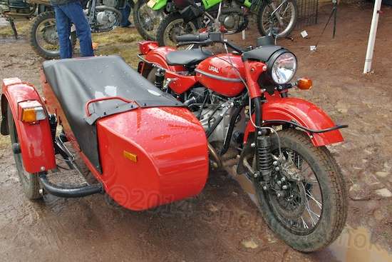 It turns out Ural is a Russian-made bike imported into the U.S. now. Stalin managed to get BMW blueprints, license to manufacture, and a sample or two early in WWII, just before the Germans turned on them and invaded. The Russkies reverse-engineered it and started making their own clones to use against them. Current bikes now have fuel injection, electronic ignition and disc brakes, but retain much of the original 1930s design features intact. You can even order a two-wheel drive version and a machine gun mount, if you wish, ladies! Reliability reputation is spotty, as expected, but holy mackerel, what a bike!