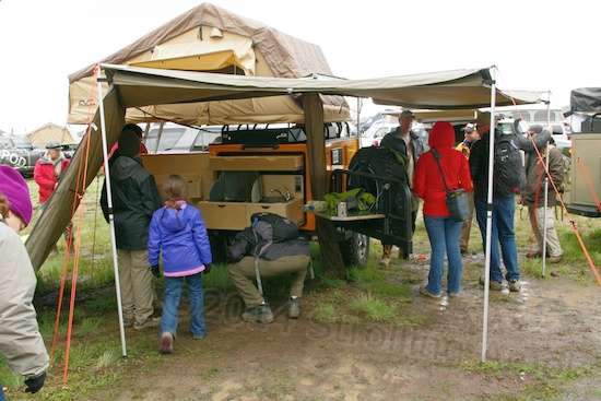 The Overland Expo is directed toward people who like to methodically cover long distances, exploring and enjoying the challenging trip through areas seldom crossed. Some are literal world travellers, shipping their rig from continent to continent to explore all that the world has to offer. Some go from Alaska to the tip of South America. Some just go on extended excursions, and then return back home until next year. A few try to find a way to make it a full-time activity, gathering sponsors and generating publicity for them. “Overlanding” is not really intended to be a long-term, full-time activity, but is simply geared mainly toward those who enjoy extended tent camping in remote areas difficult to access by conventional means. By and large, these folks are young and up for the adventures and challenges of navigating over very difficult terrain in order to experience vistas seldom seen, and the sometimes-arduous process is more valued than the accomplishment of it. The types of equipment that make that process possible are here at the Expo.