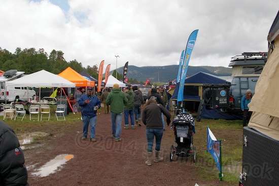 My being out in Arizona’s drier parts for so long made the many days of overcast and frequent sprinkles of rain stand out. The rain actually got significant just before the Expo started, which turned the grounds into a bit of a mudpit, which was probably a first for this show. I felt sorry for the vendors, who had to find the driest spot available in their little preassigned slots to set up canopies that were commonly surrounded by moats of water. Attendees then had to snake their way around the mini-bogs and ponds to navigate a workable path in the gooshy mush. Even on the main paths through the show area, folks needed to use care to pick a path here and there.