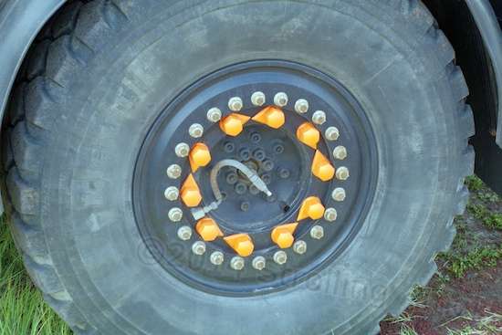 Beats me. Maybe they indicate any wheel lugs that are loosening. I think that hose remotely controls tire pressure.