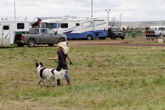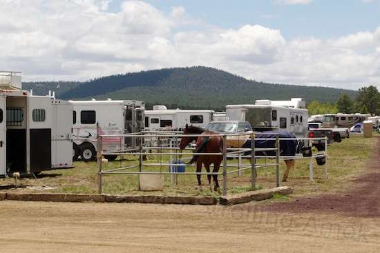 Second was the overall lay of the event. In Wickenburg, teams tended to show up solo and compete. They seemed to be locals who were there to see how well they could do, get any winnings, and go home when it was over. Here, it was mainly a full-blown family thing. They came in, set up working camps, and dads went to the arena to do their best while moms cooked and made camp livable, and everyone else did their thing. It was more like a mobile town, and horses replaced all other forms of transport. Unlike other places I’ve been, the horses here paid no attention to my bike. It tends to spook most of the rest, and I try to ride with that in mind. These horses seemed to have been around the track a few times, with that attitude of seen it all, done it all. No squabbles between them, no personality quirks, no shyness, no insecurity. Any small child old enough to sit upright and hold the reigns could get a boost up and ride around as they liked through camp. Smaller than that, and they’d occasionally be led around by a parent. The few dogs here, all mixed breeds, were leashed, well-behaved, and obedient, even if not overly friendly. No barking or yapping heard at all. Kids and youths gathered, talked and played – and practiced roping on dummy steers. Predictably, there was no mall syndrome here among any – no bored toddlers throwing tantrums to get their way. They were too busy and preoccupied with all that was going on around them.