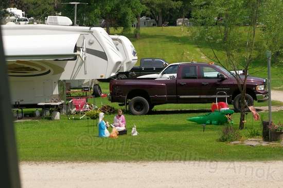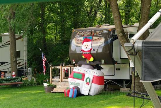 Yes, they are everywhere. I’m keeping a very low profile here, believe me. There’s one seasonal guy here with a giganto-scale model railroad layout here, beside his trailer. You can tell whenever he shows up by the recorded steam whistle sound coming across the driveway. Not holiday-related, but still odd.