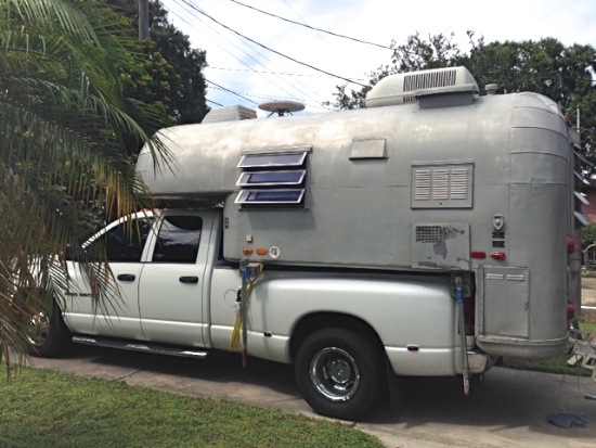 David is one of those gluttons for punishment who enjoys taking basket cases and refurbishing them, and then on to the next. But it’s possible that this old 1,700-pound beer can might stick around for awhile, since it’s roomier all around than the newer refurb that he has now. With its aluminum structure still intact, only the wood-trimmed interior needs attention. He says that it’s usable right now, as-is, and admires its build quality. “This one may be my keeper, we will see,” he wrote. There are a few snags to be dealt with, though: he’s still trying to figure out how to get access to his Dodge’s spare tire release mechanism, which the Avion now neatly covers. He also likes to tow a motorcycle trailer every now and then, and what with all that camper overhang, he will require a long hitch extension that will greatly magnify the effects of tongue weight on the truck.
