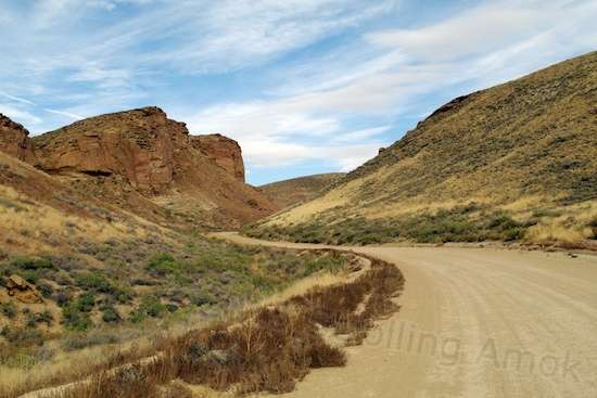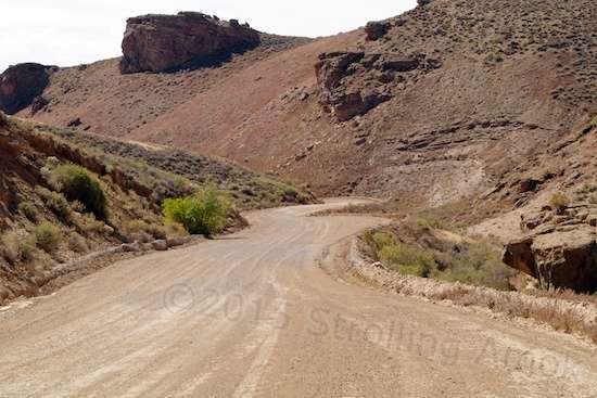 The ride downhill to pavement is two and a half miles. I alternated the front and rear brakes when I could, to give each a chance to cool a bit.