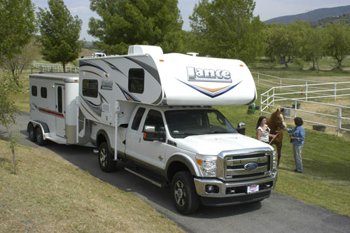 i see quite a few of this type of rig out West: truck camper and horse trailer. Campin' & ridin'.