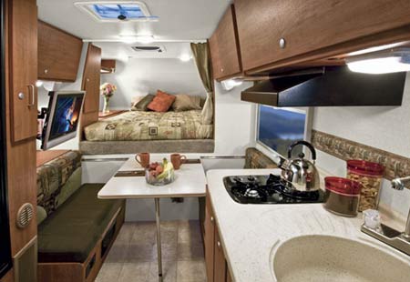 Interior of the Lance 830, which will never look this neat and “House Beautiful” once it’s sold and in use.