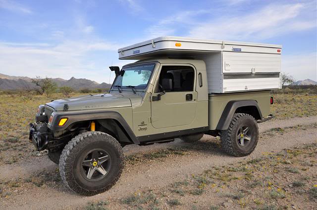 Equally serious for the outback is an AEV Jeep Brute "pickup" with a stubby Four Wheel pop-up in its newfound bed.