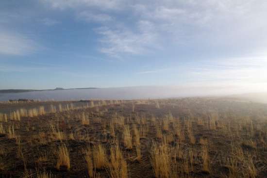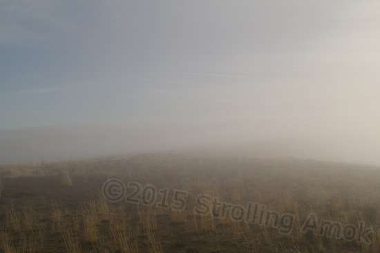 You can think of it as fog, but it’s clouds. They roll in so thickly that the road beside your rig disappears in them. This was shot before it got thick.
