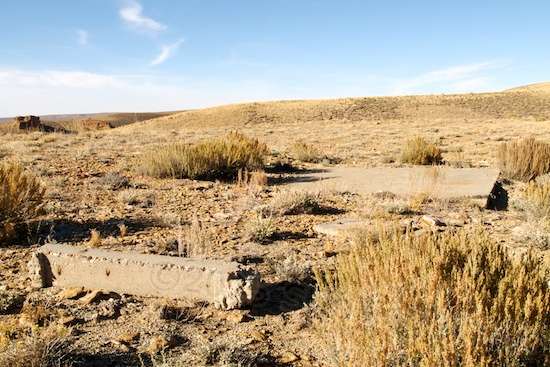 I had only questions as I looked at a shed-sized smooth concrete pad, a small square one with hold-down bolts, and a long piece broken off of something.