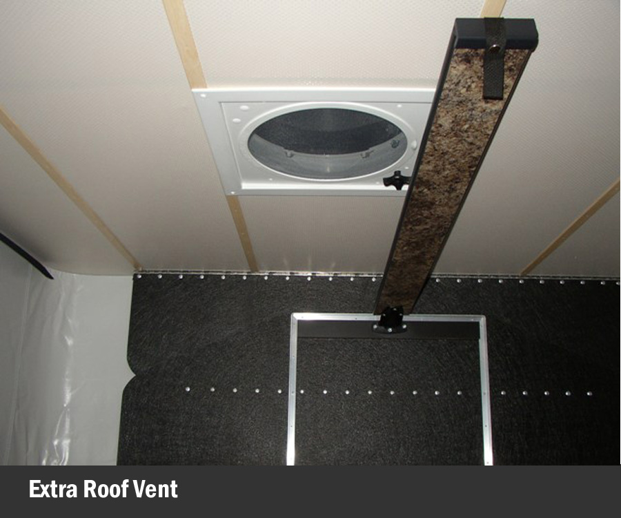 • Fan-Tastic power roof vent fan. (Ventilation can be an issue when that flexible wall section starts radiating summer sun heat.)