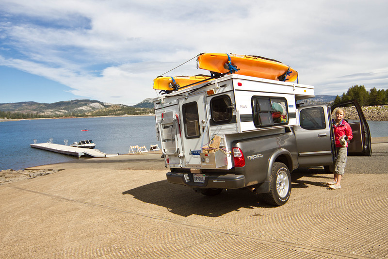 Here’s the deal. If I didn’t feel so strongly about accessing some of the more difficult spots I’ve seen first-hand, I’d be dropping back to a hardside camper, or even punting with a small TT. Lacking four-wheeling experience, and the mods and extrication equipment needed to get myself out of jams, I’ll tend to be fairly conservative about asking more of the big Ford than it can deliver. In other words, I’ll tend to get creeped out earlier than the rig does. That’s a good thing. However, I don’t yet have a lock on what it absolutely can and cannot do, and definitely do not want to lower the bar on those campsites that I have successfully accessed with it already, solo and with the bed loaded. If I’ve made it with the truck alone, I want to be able to do the same with the camper loaded on. My dread would be to load in the usual top-heavy camper that maxes out its suspension capacity, and have to deal with that on the types of trails I’ve been over. They are tippy, and I do not want that sensation either on or off-road. The whole goal is to avoid exploring the edges of control and performance while still getting over trails that are not the Ford’s forte. I’m willing to sacrifice for that, and most campers understandably are not burdened with that orientation.
