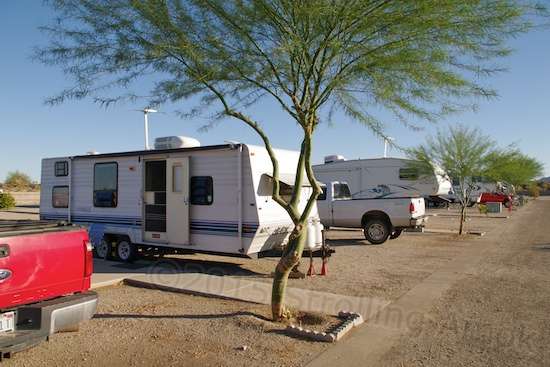 I reached Pioneer RV Park in Wellton at about 1:30 local time, the distance east from Yuma being about 18 miles. Interstate 8 gets real interesting briefly in that span, winding up, down and around some hills at a 45 MPH limit, and that’s just after the check station where military men with dogs check for drugs and illegals smuggled in. They know how to read faces, so if you have that Gomer Pyle look as I do, they just wave you past. They did sideline a Greyhound bus in front of me, but that’s probably normal procedure, to check luggage bays.