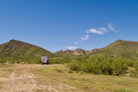 I dragged the cargo box once during my escape, which let me affirm that putting down a deposit for air lift bags on the rear was a good decision. Just a couple of inches more ground clearance back there would be a good thing, putting the ride height back where it is supposed to be. A cheaper alternative would be to jettison the cargo box or load only blankets and pillows in it, but that’s sure not going to happen. It took maybe an hour and a half to make it all the way to Arizona 95 northbound, gratefully throttling up to 65 on the cruise control. After a food and propane stop in Quartzsite, it was on to the Wick.
