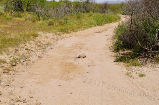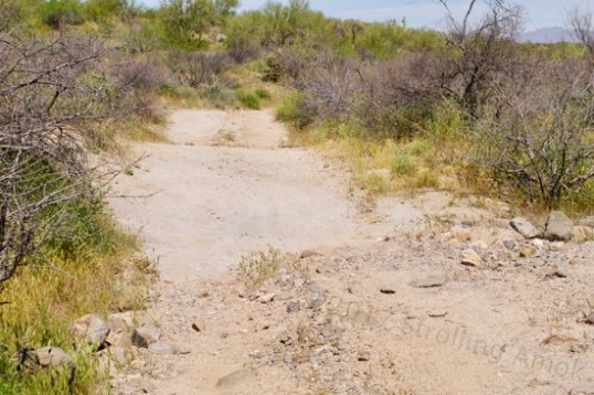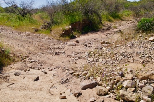 As I’m looking back toward camp, this little dry wash crosses the path.