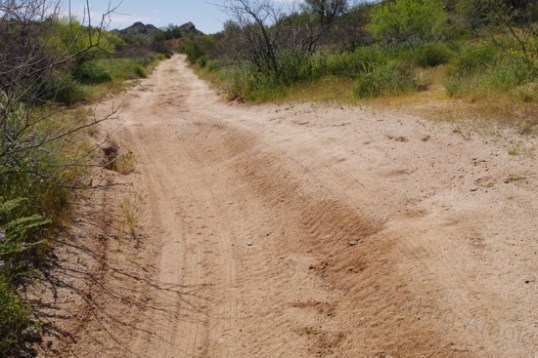 Same feature, looking back toward camp. This will induce a LOT of side tilt that can’t be dodged (no pun intended) and although I’m pretty sure that my rig can make it without flopping over, I think I’d hug the stage-left side and sacrifice some paint to the bush. You may be just five miles from town, but you really don’t want to tip your one and only over at this spot.