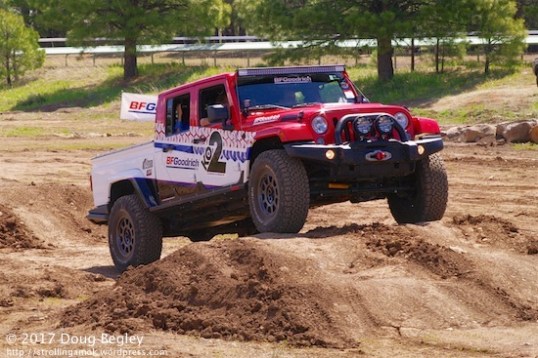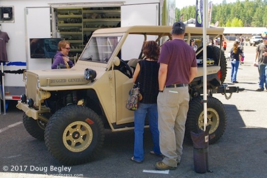 BF Goodrich had their own test track to show off how well their tires work in dirt. All you had to do to get behind the wheel was to sign up for any of three vehicles. I didn’t, even when I was invited to. My motto is, “Never listen to a really good, high-end stereo, or when you get back home, you’ll forever after be dissatisfied with the crappy system that’s all you can afford”. Their Jeep was the bee’s knees, floating gently even over the section of boulders they’d laid out. Lot’s of clearance, spongy ride, shorter wheelbase. Nope. I also hate seeing nothing but air over the hood. Makes me want to get out and look at what’s ahead. They’d toss me out.