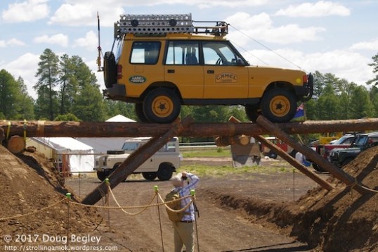 The gateway to the Camel Trophy Expedition Skills Area. This is a two-log bridge which is not uncommon in South America. Remember the Camel Trophy events? They ran right up until the event morphed into a California-style triathlon event that had nothing to do with hacking your way through jungles and fording deep streams. I think throwing Frisbees became the biggest test of mettle before Land Rover dropped their participation.