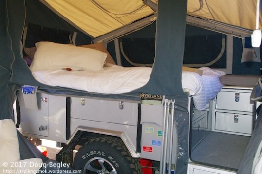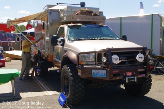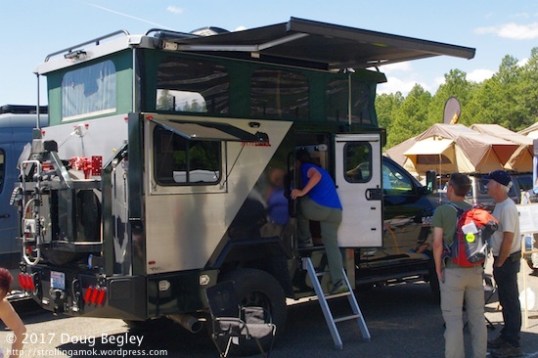 This VMI Kodiak pop-up requires a flatbed in place of the usual setup – I think. Most do, but I didn’t step closer to see whether it mounts directly to the frame, which would be very unusual and save about $8,000. It’s quite possible, since the rig is sold complete, with the Ram pickup wearing it.