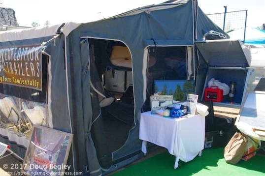 This “Crux Expedition Trailer” offered what looked to be a 12×12 great room and off-ground sleeping bed platform, all out of a smallish trailer. Luxury camping.